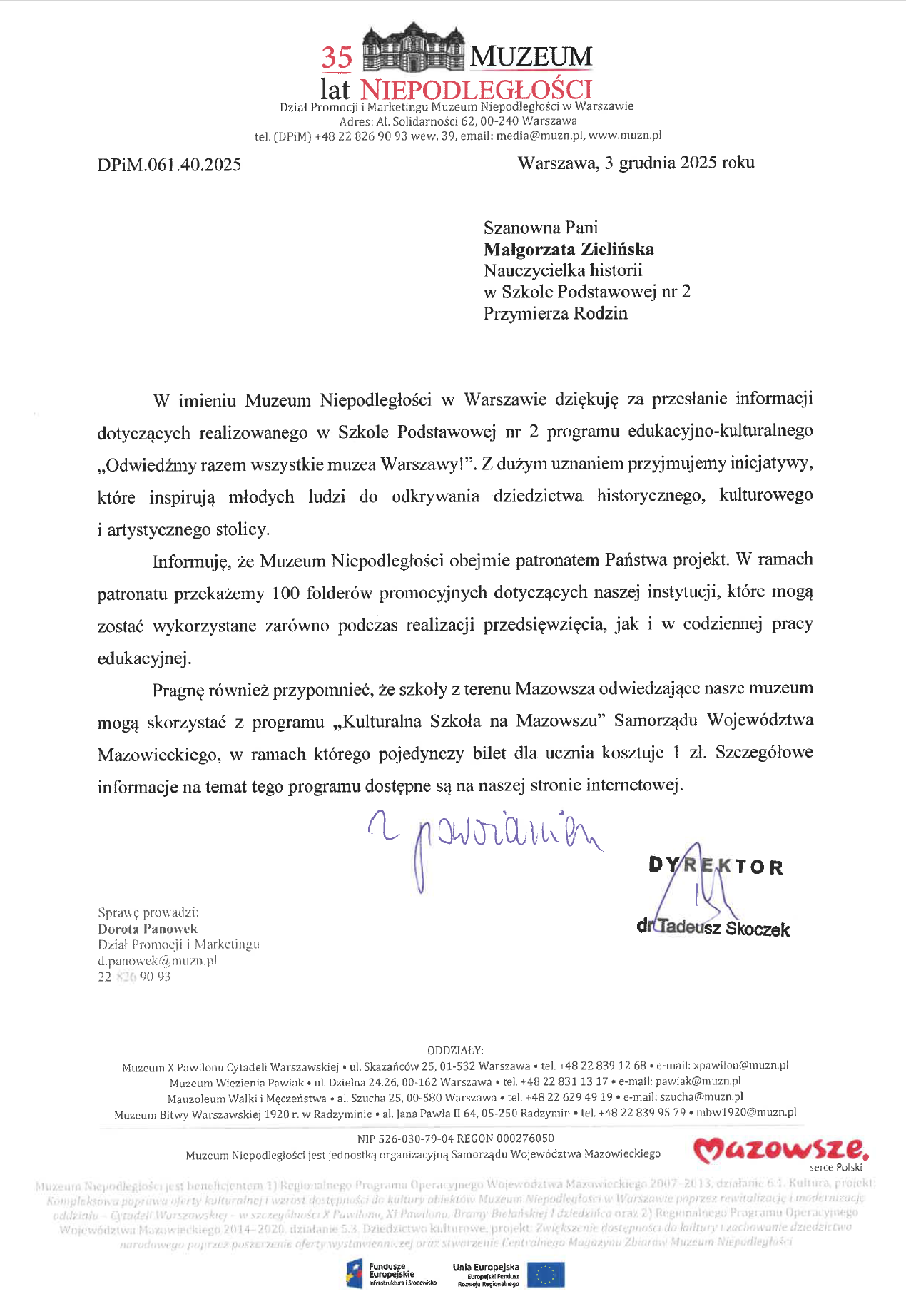 Nasza szkoła realizuje wyjątkowy program edukacyjno-kulturalny, którego celem jest zachęcenie uczniów i ich rodzin do odwiedzania warszawskich muzeów. „Odwiedźmy razem wszystkie muzea Warszawy!” Chcemy, aby młodzi ludzie odkrywali bogactwo dziedzictwa stolicy i uczyli się, że kontakt z kulturą może być fascynującą przygodą.